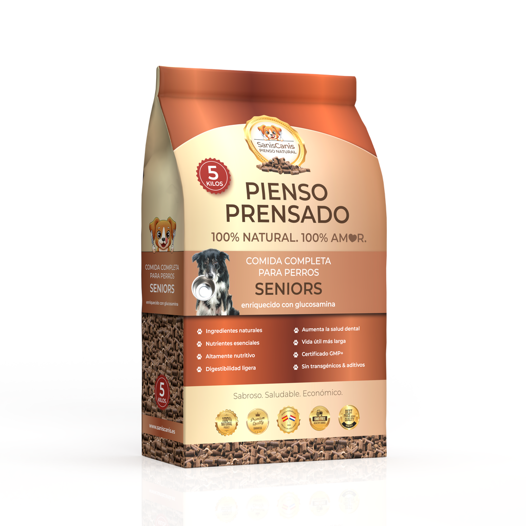 SanisCanis senior es un alimento completo para perros mayores. Esta croqueta prensada tiene un contenido proteico más bajo, además, se han ajustado las proteínas. Los cereales como el maíz, el trigo y el arroz se han digerido prácticamente en su totalidad.